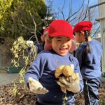 楽しみにしていたおいもほりを年中さん全員で行うことが出来ました。子どもたちはロンゴひろばの自然の中でのびのびと活動を楽しむことが出来ました。一生懸命掘り出したおいもを手に取り、満足そうな笑顔をたくさん見ることができ、職員一同嬉しく思っております。今年は数名で 1 つのおいもを掘りました。1つがとても大きなサイズなので、お友達と仲良く楽しく掘ることが出来ました。