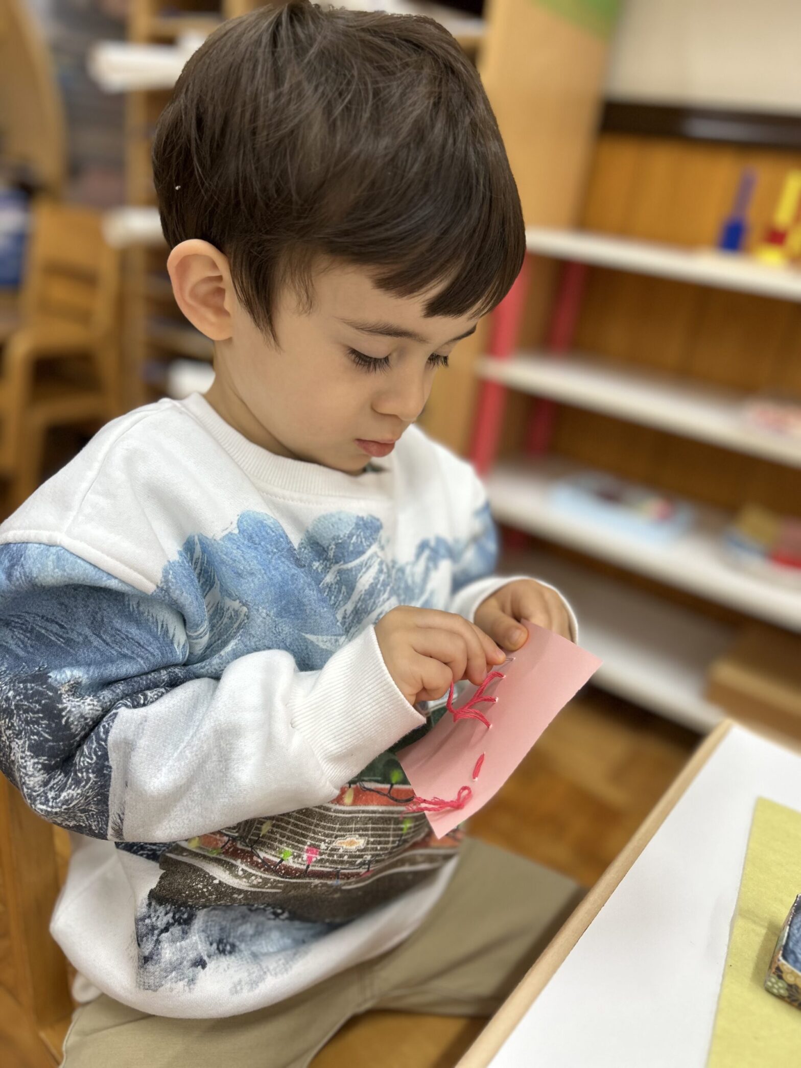 お部屋にはやさしい日の光が差し込み、年齢にあった家具や、教具を使い、発達段階に合わせた活動を行っております。